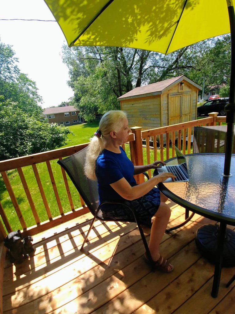 In her home province of New Brunswick, Canada, Cheryl Gillespie, along with her cat Mattie, will often be found basking on the backyard deck beneath the warm sunshine. Here, in this very spot is where many of the chapters for her award winning autobiography, I Feel Your Stare were written.
