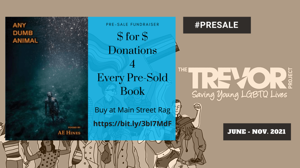 With every pre-sale purchase of Any Dumb Animalby A.E. Hines between June and November 2021, a group of anonymous donors will match dollar for dollar each sale and donate it to The Trevor Project.