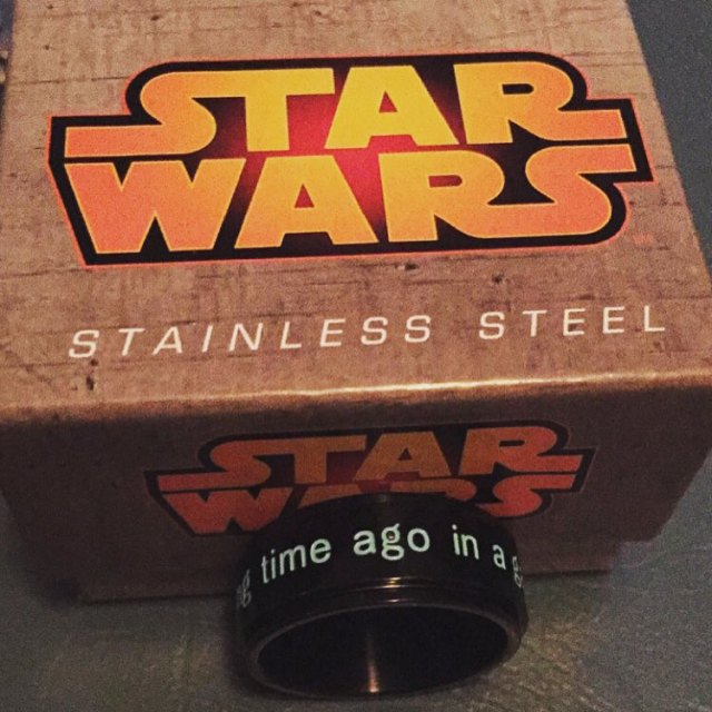 Tomorrow is the opening day of the @starwars film, #theforceawakens and not only will I be going to the first showing of the day, but I will be going in style thanks to an early Christmas gift from my father and my mother @krisonrequest who will be going to see the film with myself and @alymarieavina my sister. Thanks so much for the incredible ring guys! It’s so nice and I can’t wait to see the film tomorrow! #lucasfilm #sharetheforce #starwars #starwarsfan #starwarsgeek #starwarsnerd #starwarstheforceawakens #starwarsjewelry #alongtimeagoinagalaxyfarfaraway #Christmas #christmas2015